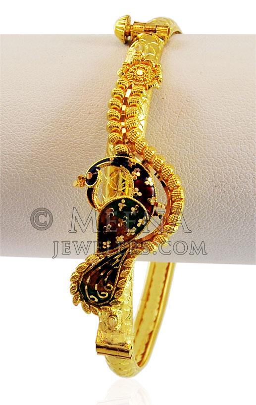 22K Gold Peacock Kada BaKa17300 Fancy 22K Gold Peacock Kada designed with traditional