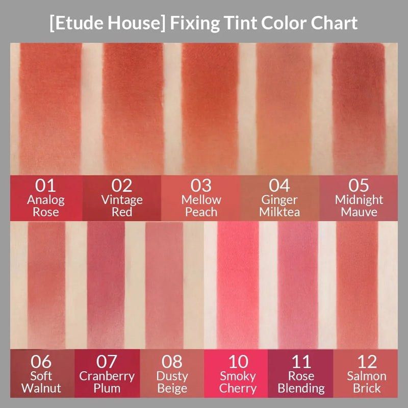 ETUDE HOUSE Fixing Tint (12 Shades) in 2022 Korean lip tint, Lip tint, Neutral undertones